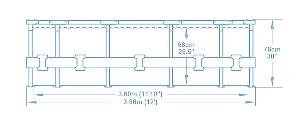 Не требует бетонирования и подготовки ямы. Всё, что нужно, - это плоская, горизонтальная площадка. Сезонный бассейн (рекомендуется разбирать на холодное время года) обладает простой конструкцией - может быть легко разобран и собран заново. Время сборки и подключения бассейна составляет около 30 мин.