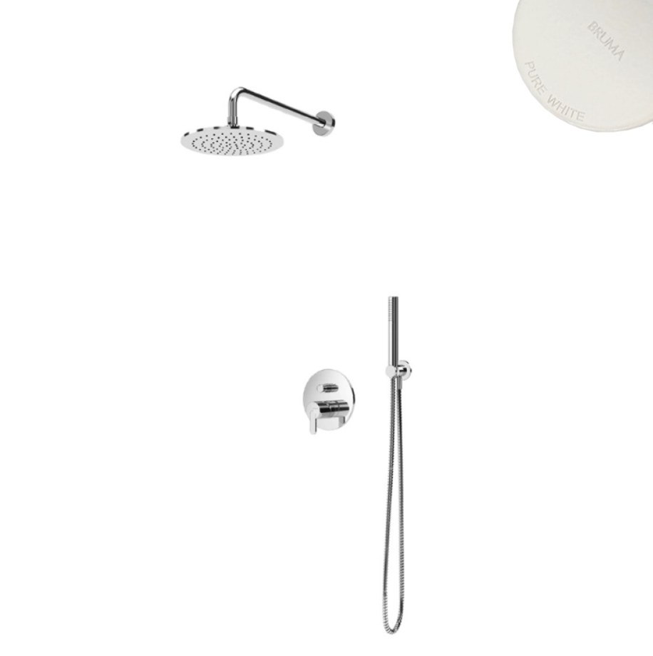 Душевой набор, скрытого монтажа, с латунной душевой лейкой Ø250 мм и ручным душем Elo Leaf 167 722 1PW Pure White.