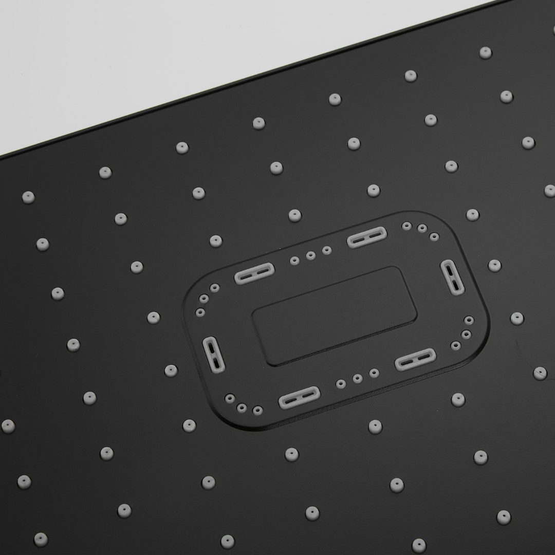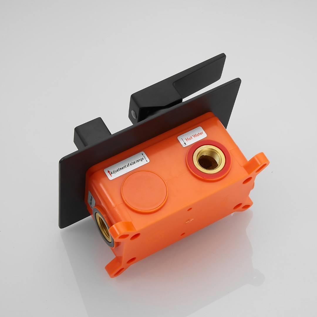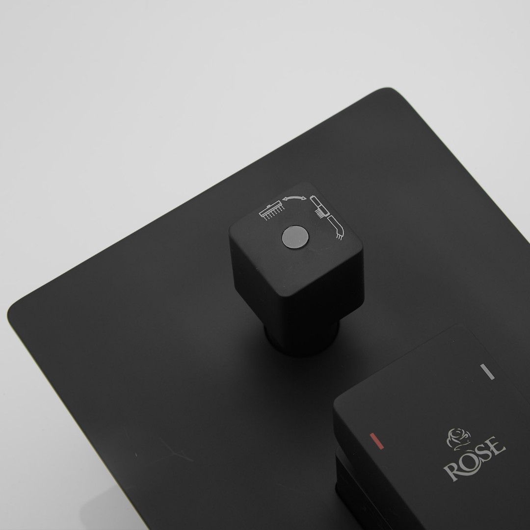 Комплектация: верхний душ, держатель для душевой лейки, душевая лейка, душевой шланг, наружная часть смесителя, смеситель, шланговое подключение.