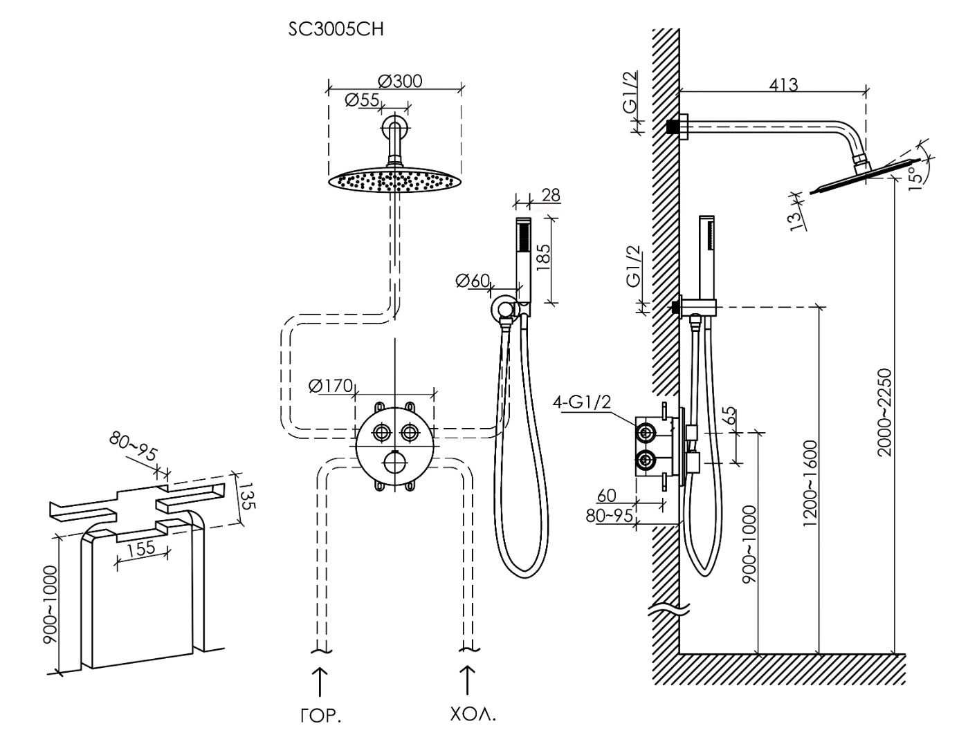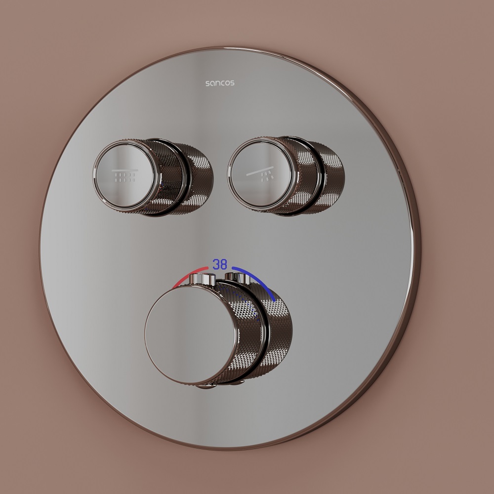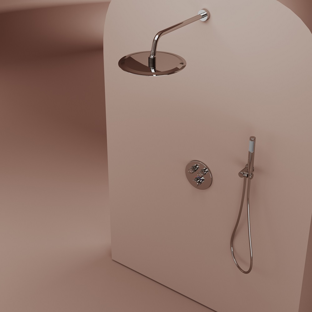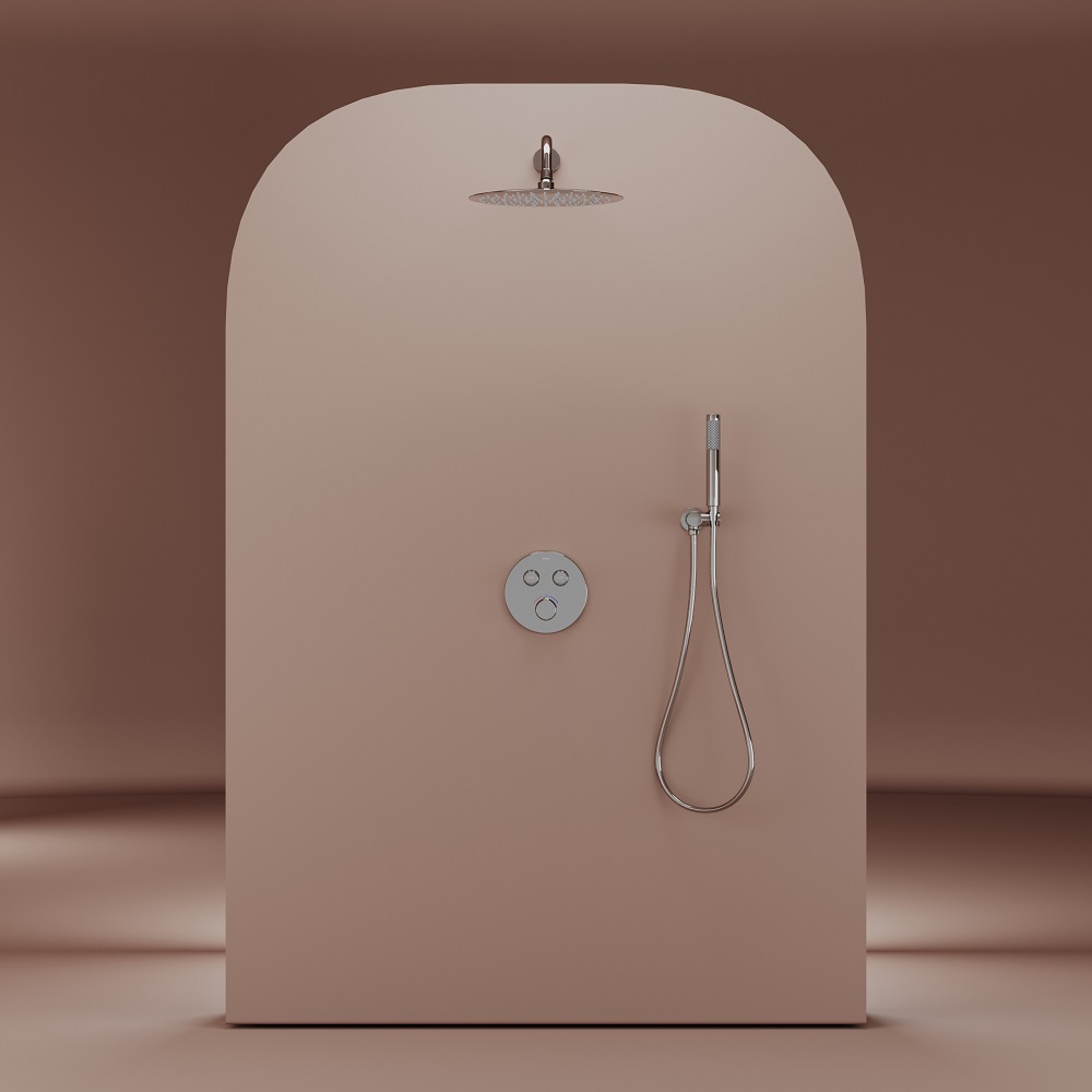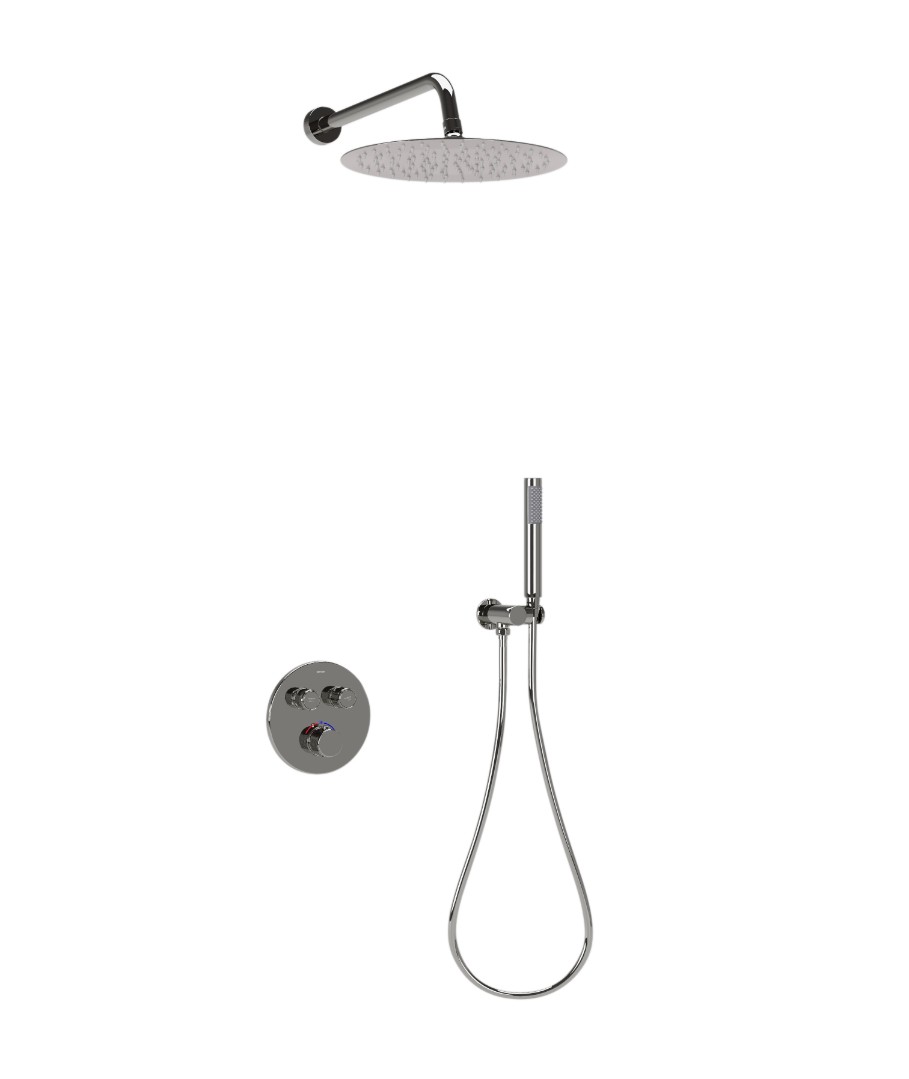 Душевой комплект SANCOS Link встраиваемый, c термостатическим смесителем, верхним, ручным душем и шлангом в комплекте цвет хром.