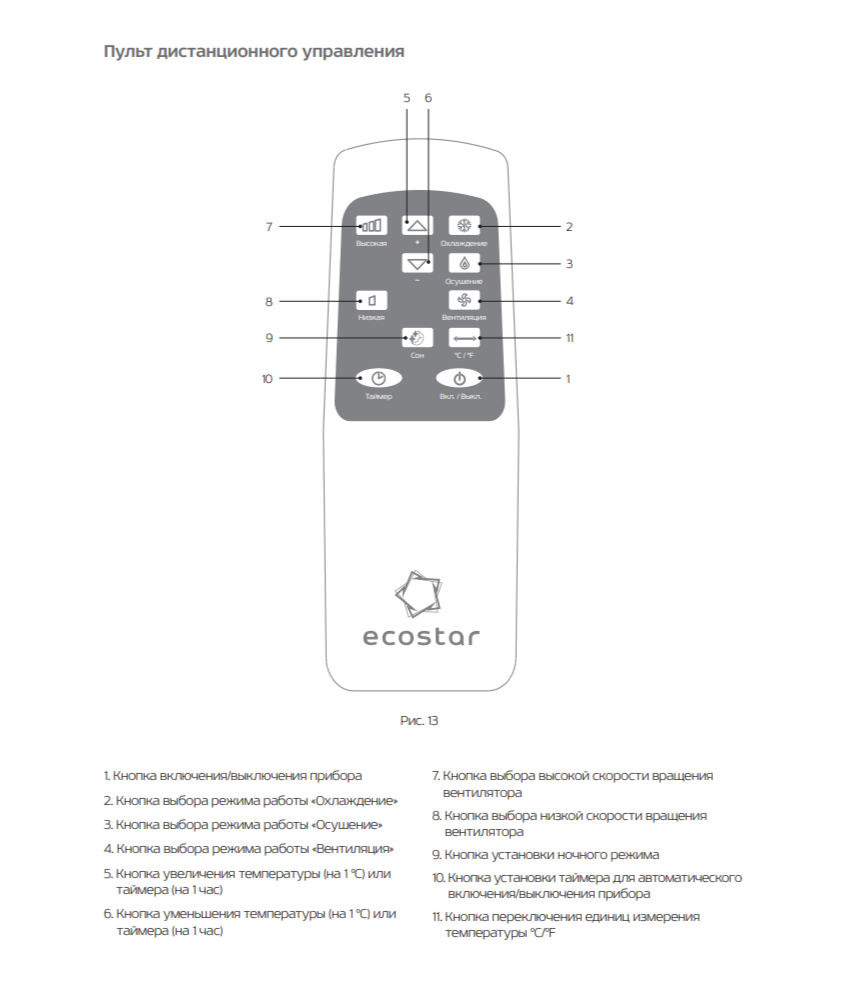 - 3 режима работы: охлаждение, осушение и вентиляция.