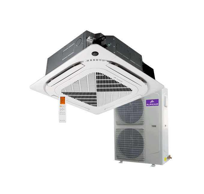 Кассетные внутренние блоки обеспечивают бесшумную производительность за счёт инновационного дизайна. Кассета подходит для любой комнаты и может быть легко установлена в подвесных потолках с видимой декоративной панелью. Видимой останется только декоративная панель. Кассета обеспечена надёжным внутренним насосом для конденсата. Кондиционер оснащён энергоэффективным инверторным компрессором регулируемой мощности.