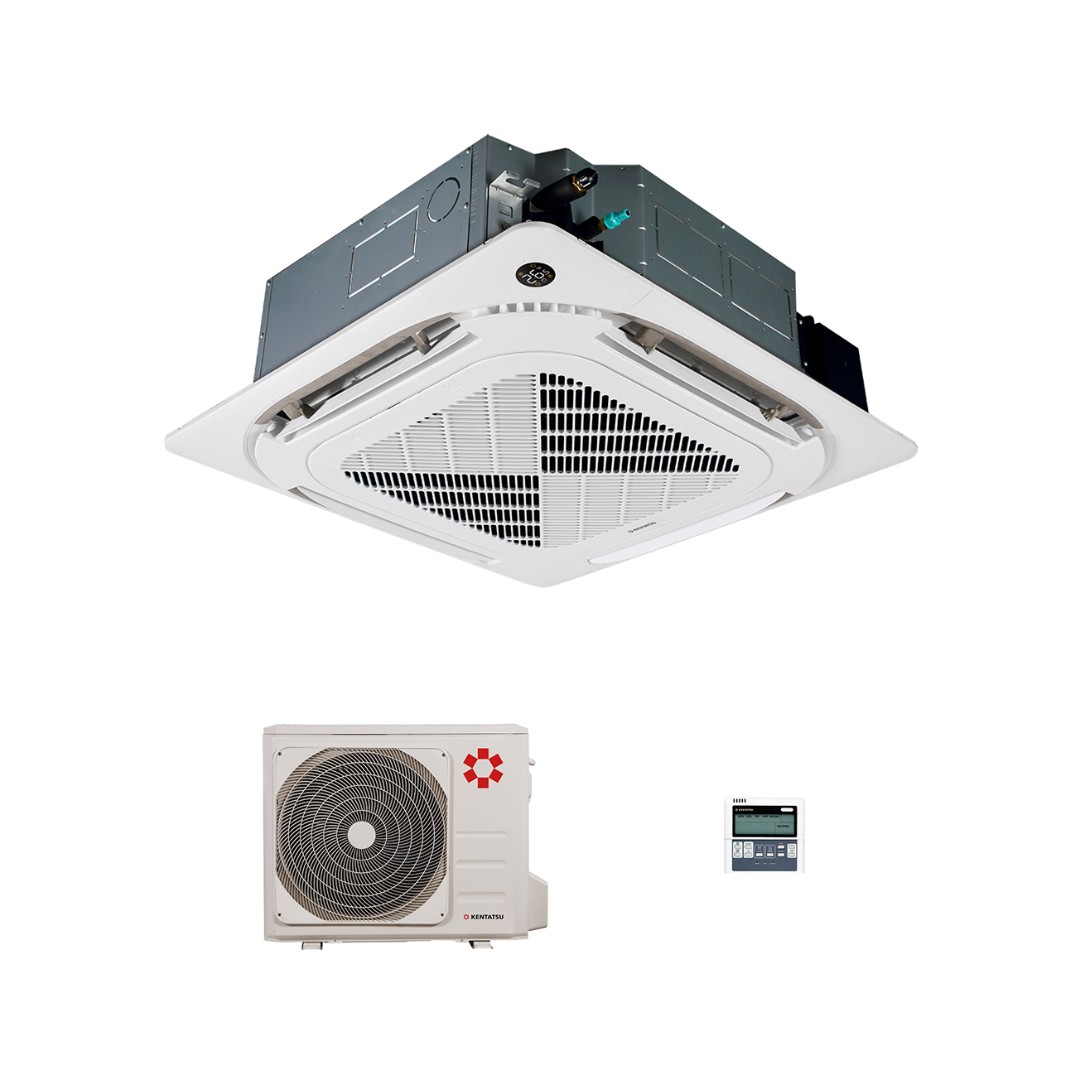 Сплит-система кассетного типа Kentatsu - это современные технологии постоянной производительности и набор ключевых функций. Оптимальное направление подачи воздуха и его равномерное распределение позволяет достигать комфортный микроклимат в помещениях даже сложной формы. Режим осушения воздуха и встроенный дренажный насос эффективно и быстро удалят излишки влаги из помещения. Самодиагностика и автоматическая защита сведут риски поломки системы к минимуму. Дополнительным преимуществом таких систем является возможность доработки зимним комплектом для работы оборудования в режиме охлаждения при отрицательных температурах.