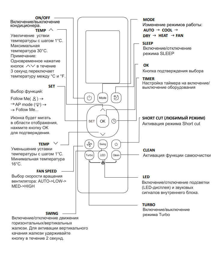 - 3D Airflow (привод верт. и гор. жалюзи с пульта управления);
