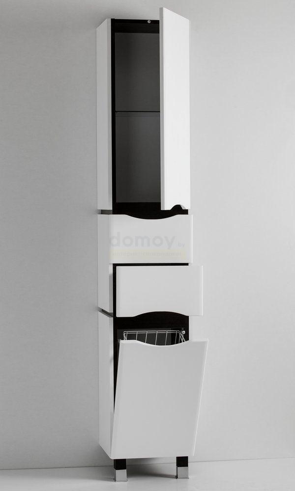 Шкаф-пенал подвесной АВН Латтэ 35, правый, с корзиной для белья 41.05. Материал фасада-МДФ, покрытие-высокоглянцевая эмаль. Материал корпуса-ЛДСП цвета венге/ЛДСП, покрытое высокоглянцевой эмалью. Дверцы и ящики оснащены системой плавного закрывания. Изображение и цвет на мониторе могут отличаться от оригинала.