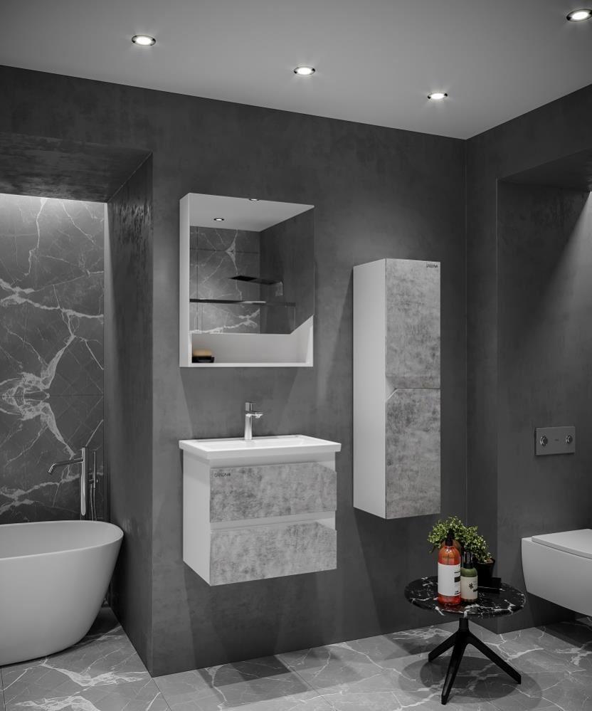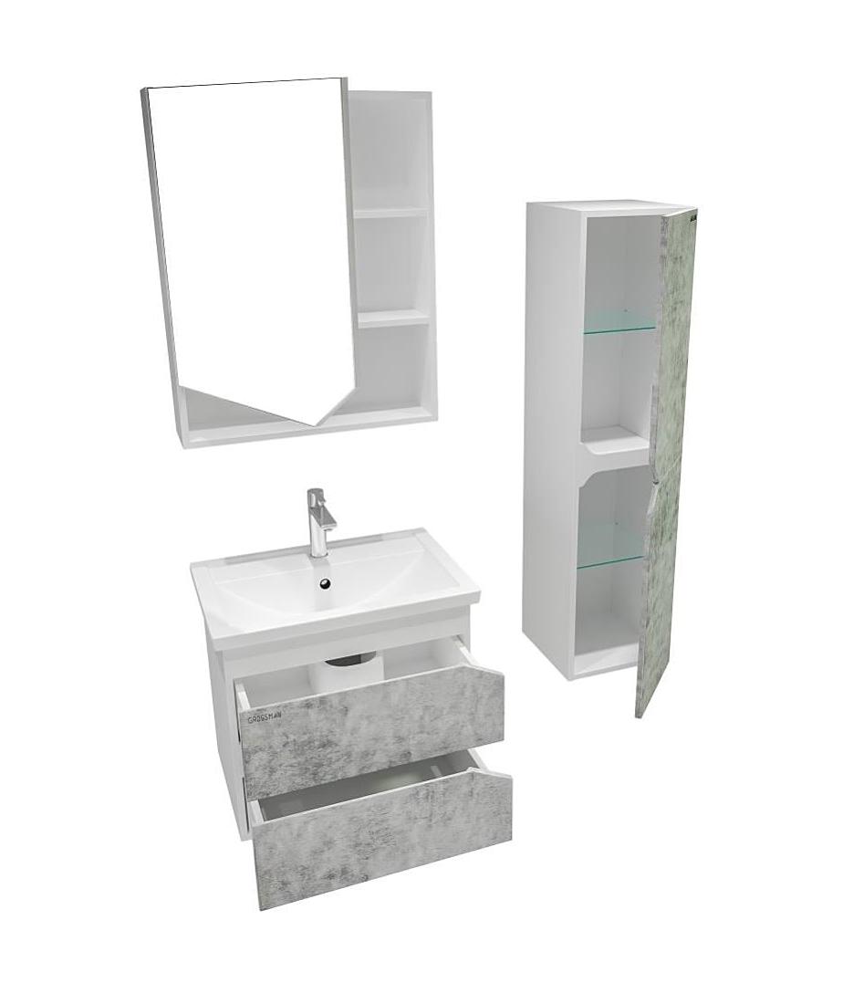 Шкаф-пенал подвесной Grossman ИНЛАЙН-35, белый/бетон