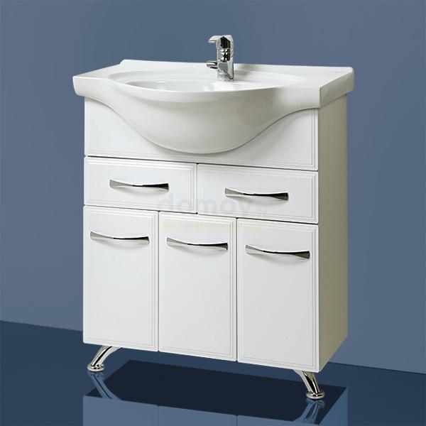 Ширина тумбы-70.4 см. Ширина умывальника-75 см. Материал: фасад-МДФ, корпус-ДСП.
