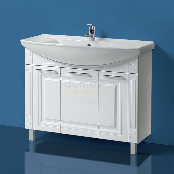 Тумба для умывальника Акваль Лорен 105 с тремя распашными дверями и полками внутри. Цвет на мониторе может отличаться от оригинала.