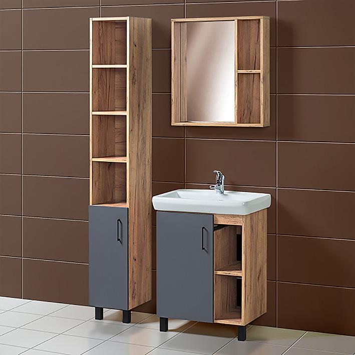 Шкаф под раковину Лофт 65 см, В2.4.01.6.5.1 напольный. Дверь распашная, полки открытые. Продаётся в разобранном виде. Размеры указаны без учёта габаритов умывальника.