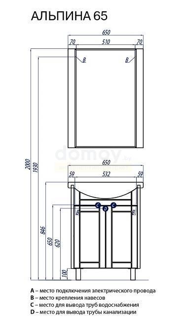 Дополнительно комплектуется: умывальник Балтика 65 1WH207775.