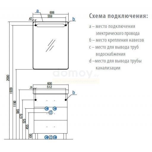 Дополнительно организовано нижнее подключение труб водоснабжения и канализации.