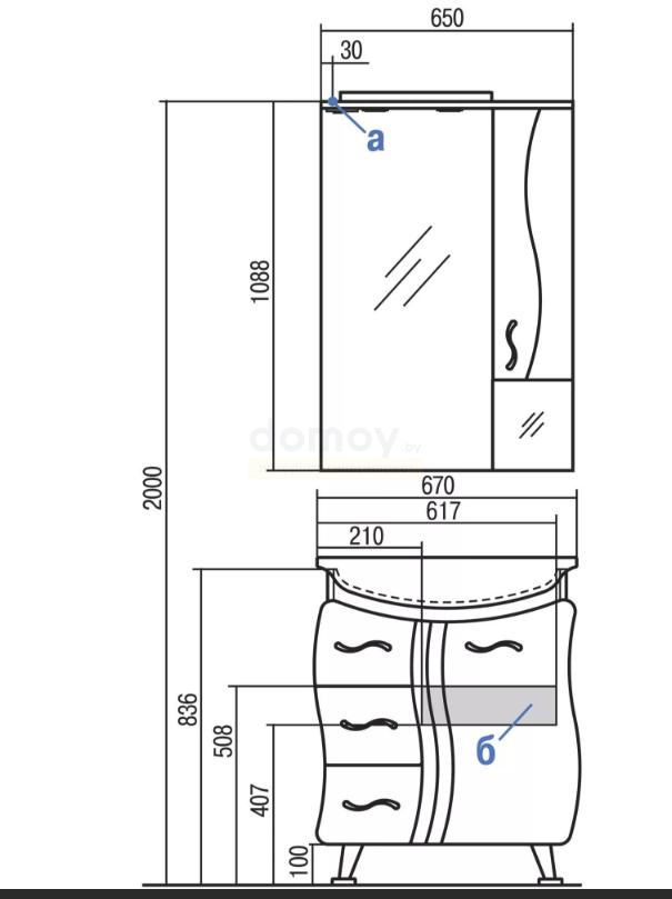 Дополнительно комплектуется: умывальник Аквамель 67 1WH110213.