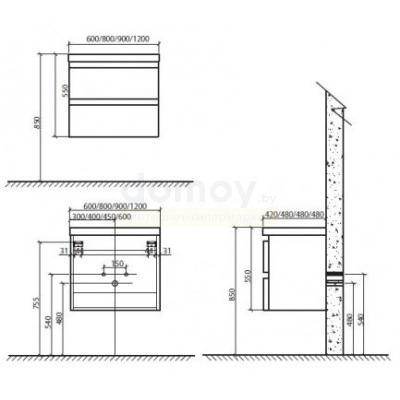 Дополнительно комплектуется: смеситель, сифон, умывальник Ancona-N Energia-N 60 EA-600-LVB.