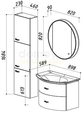 Дополнительно комплектуется: умывальник Версаль 90, смеситель, сифон