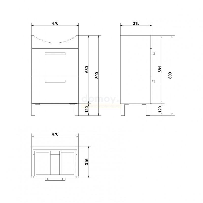 Ширина тумбы - 47 см. Ширина умывальника - 50 см.