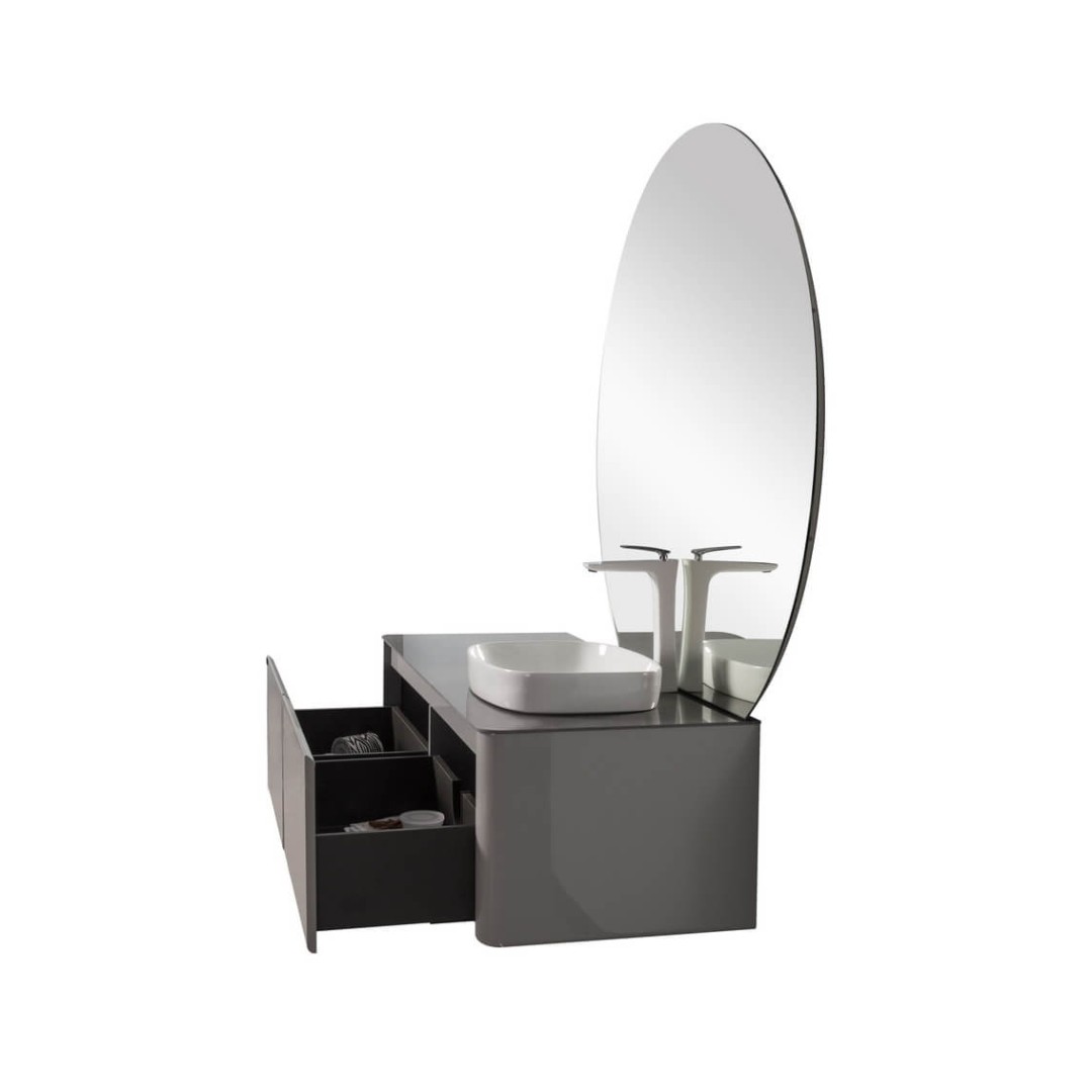 - Цвет тумбы glossy light grey.
