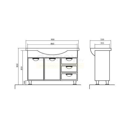Материал фасада-МДФ, материал корпуса-ДСП толщиной 16 мм. Покрытие фасада и корпуса-краска. Высота ножек регулируется до 1.5 см.