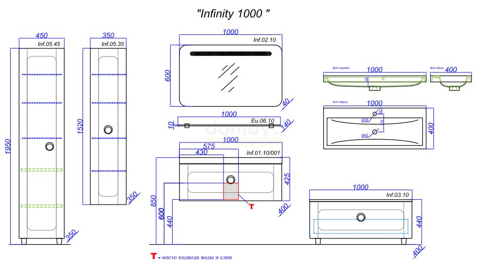 В комплекте: умывальник Infinity 100 Inf.10.04.D.