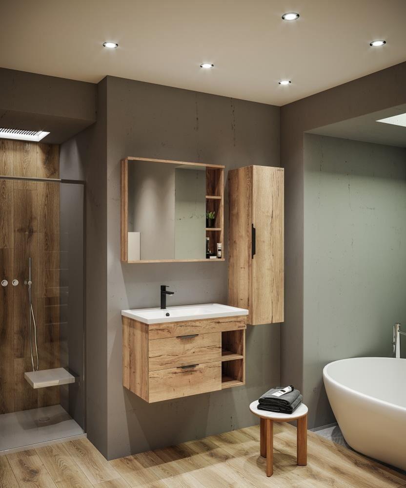 Шкаф-зеркало Форта 80 см - роскошная текстура и натуральный цвет дуба придают зеркалу сочетание современного дизайна.