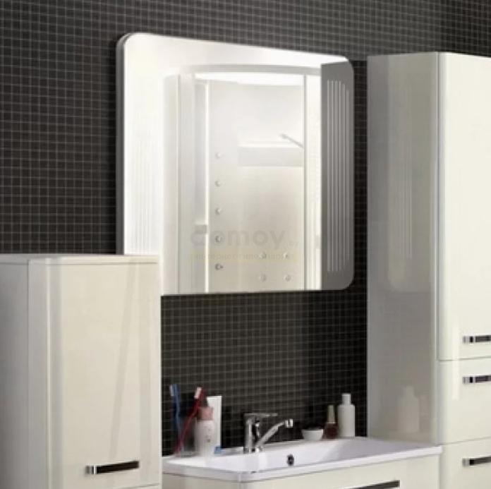 Зеркало оснащено декоративной подсветкой и системой подогрева, препятствующей запотеванию зеркального полотна во влажной среде.