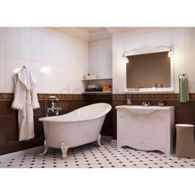 Зеркальные влагостойкие полотнища толщиной 3 мм. Покрытие-амальгама на основе серебра. Облицовано пленкой ПВХ. Цвет-итальянский орех. Цвет светильников-белый, золото. Цвет на мониторе может отличаться от оригинала.