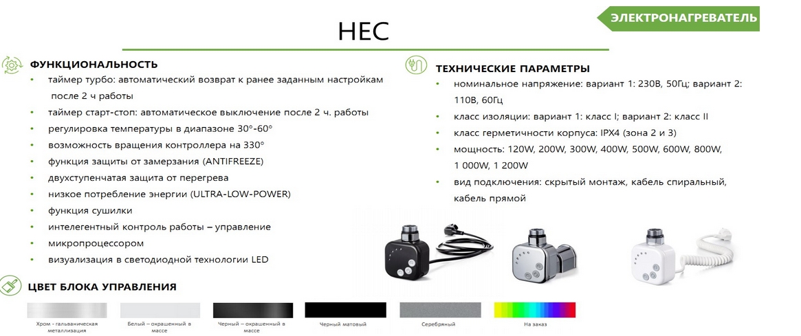 - тэн НЕС (300W) со спиральным, прямым кабелем или скрытого монтажа
