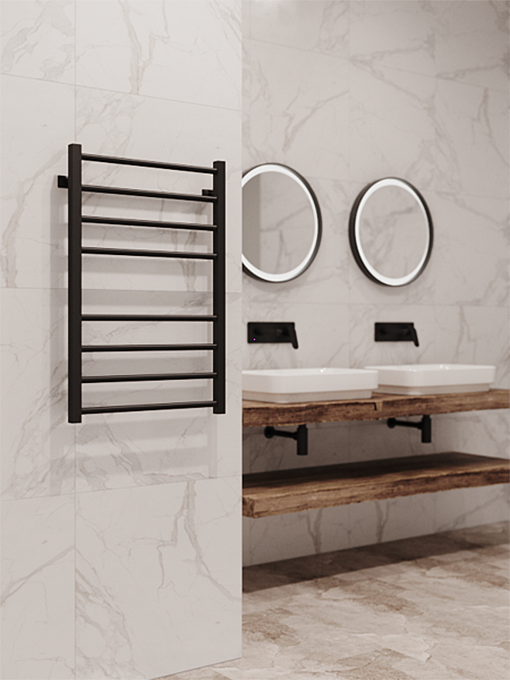 Classic - водяной полотенцесушитель из профильной трубы квадратного сечения и круглыми перекладинами без группировки, отполированный до зеркального отражения. Модель выполнена с применением полимерной технологии. Окраска порошковой эмалью в любой цвет по каталогу палитры RAL.