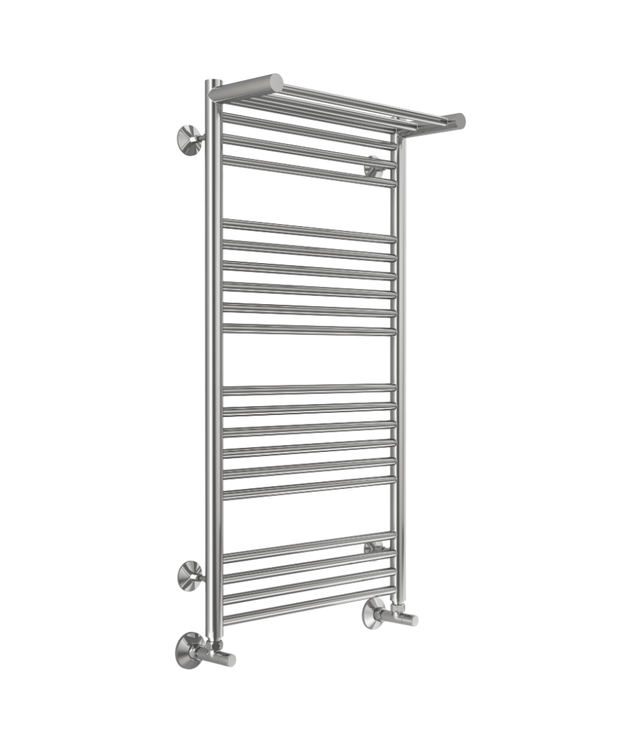 Модель «Аврора» с полкой – это грациозность линий и строгость форм. Она прекрасно дополнит дизайн интерьера в классическом стиле, отвечая за уют и тепло в ванной комнате. Дизайн-радиатор выполнен из нержавеющего металла с покрытием из никель-хрома, благодаря чему предотвращается ржавление и разрушение труб и рёбер под воздействием влаги и агрессивной среды.
