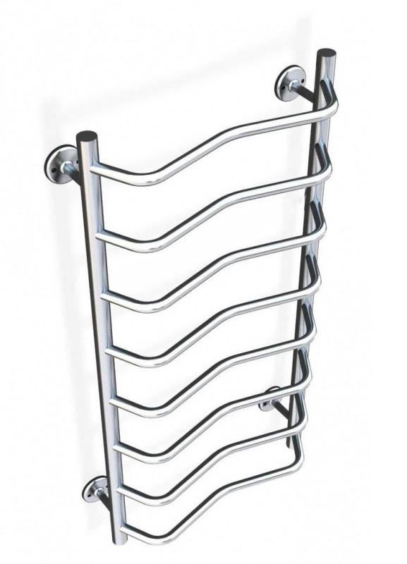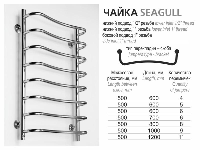 Полотенцесушитель водяной Ростела Чайка 50x60/5 (нижн.подв., 1/2" резьба) имеет тепловую мощность 288 Вт. Покрытие полированное (блестящее). Количество перекладин - 5. Диаметр перекладин -1.8 см. Тип перекладин - скоба.