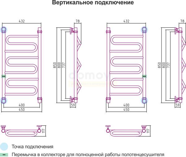 Полотенцесушитель подключается к системе горячего водоснабжения или центрального отопления последовательно к основной магистрали.