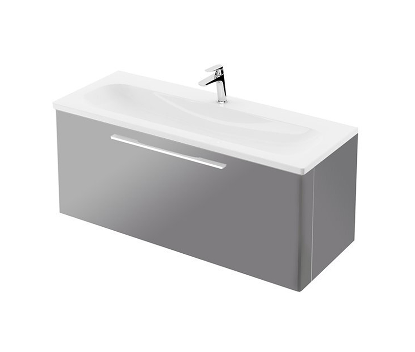 Тумба под умывальник Ravak Ring SD 800 серый. Мебель Ring отличается от другой современной продукции своими горизонтальными линиями, которые гармонизируют ванную комнату и обеспечивают максимум свободного пространства для его использования. Современный дизайн и форма тумбы с удобным способом открытия выдвижного ящика и большая внутренняя часть обеспечивают достаточное пространство для хранения. Прекрасно дополняет концепцию Ring, подходит для оборудования всей ванной комнаты в строгом элегантном стиле.