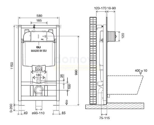 Инсталляция для подвесного унитаза OLI 74 HYDROBOOST