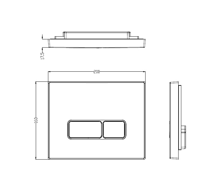 - Пластиковая прямоугольная кнопка смыва. Размеры (ШВГ) - 20x16x1,8 см.