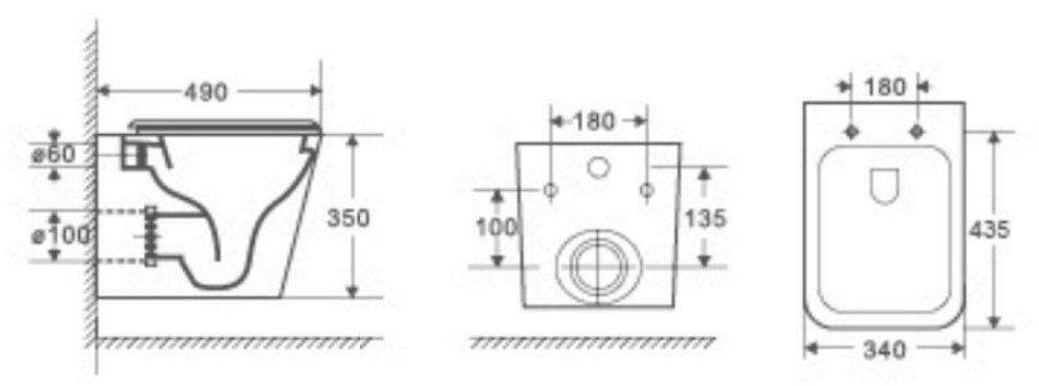 - Назначение - для подвесного унитаза
