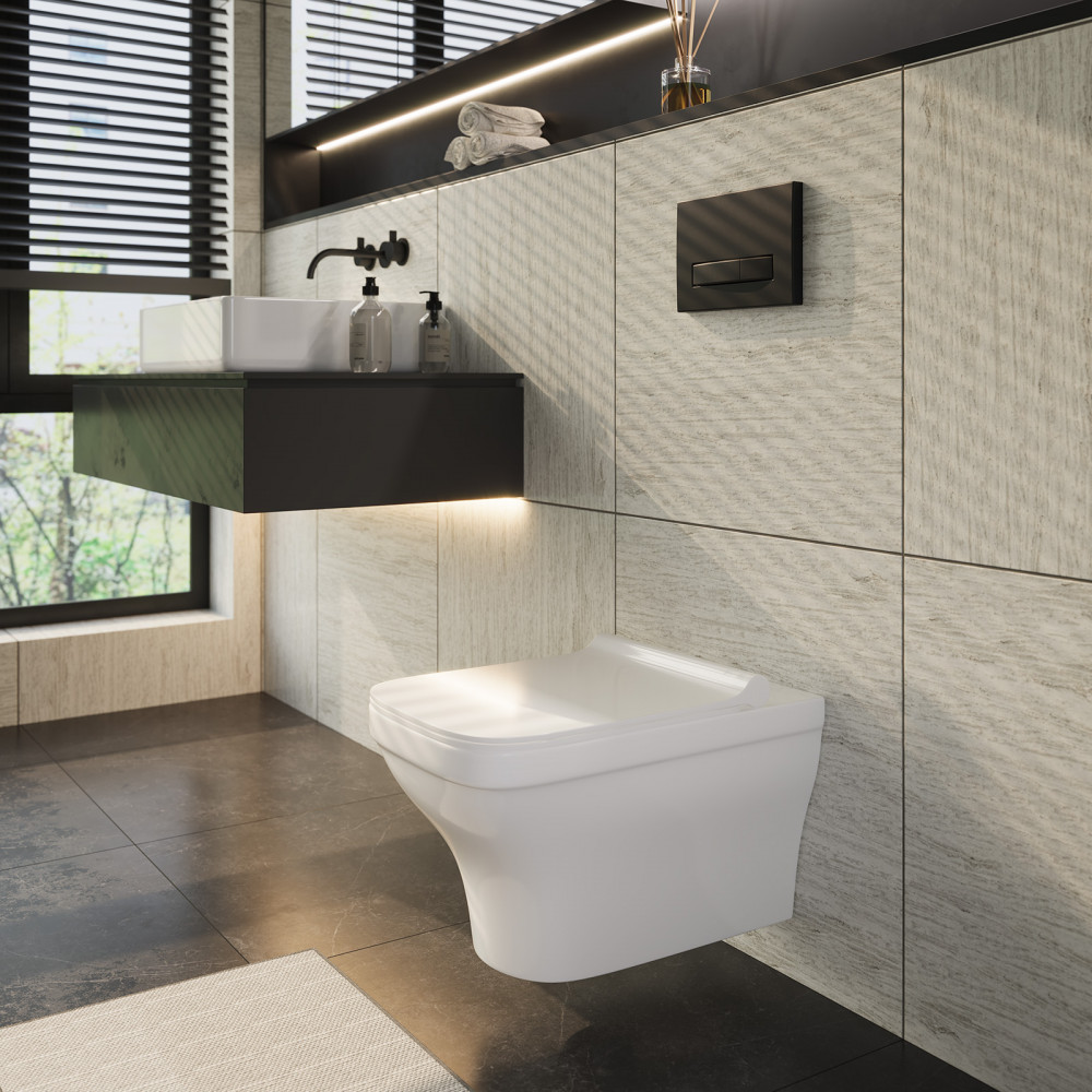 3. Унитаз STRATI Rimless. Безободковая система смыва, антибактериальное покрытие, экономия воды, скрытый крепёж.