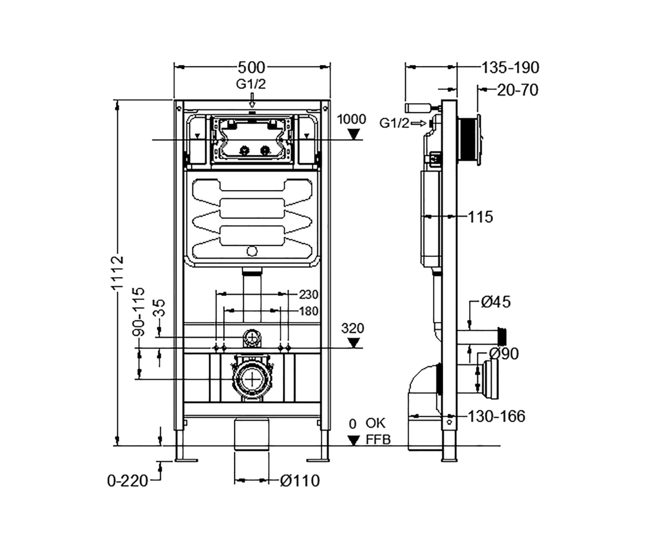 - ВxШxГ: 1120мм*500мм*120мм;