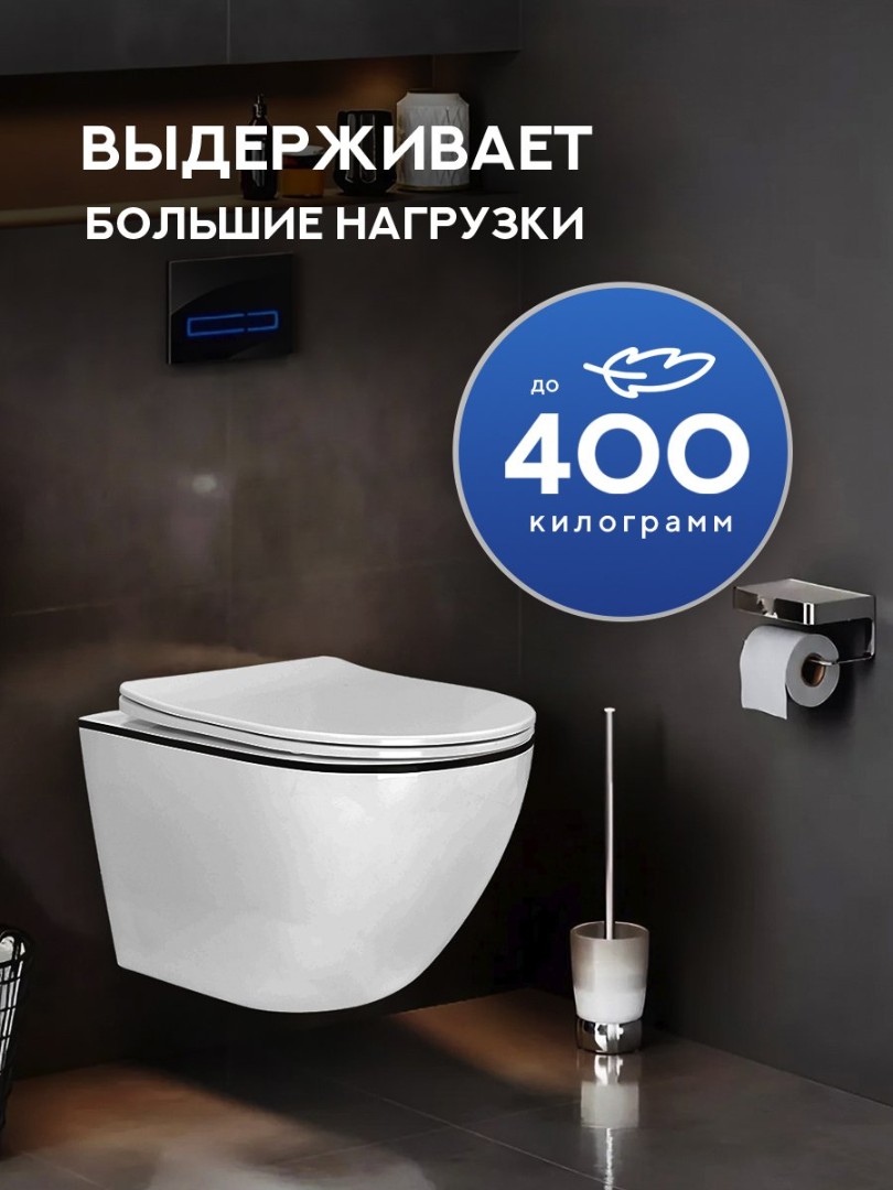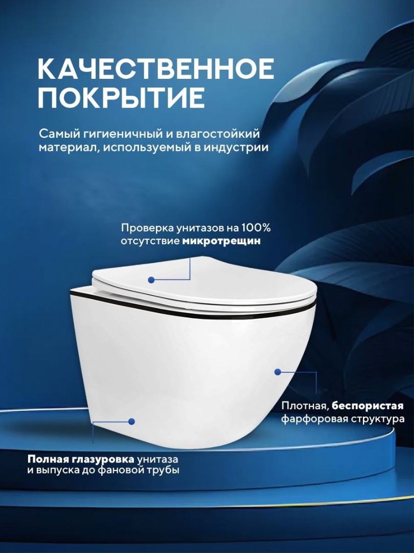 - Безободковая конструкция препятствует скоплению бактерий и грибков, обеспечивает 100% качественное смывание, не требует моющих средств, экономит воду и бытовую химию;