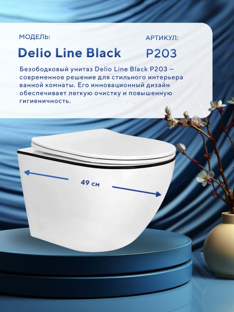 Безободковый унитаз Delio Bidet P203B - это современное решение для стильного интерьера ванной комнаты. Его инновационный дизайн обеспечивает лёгкую очистку и повышенную гигиеничность.
