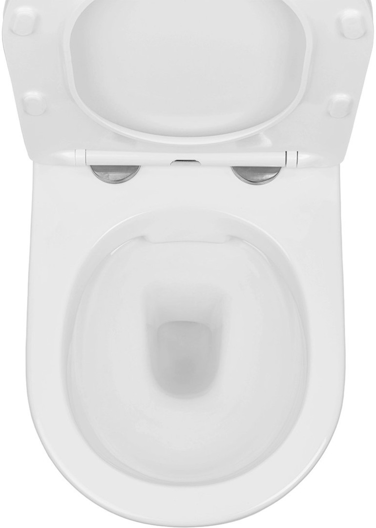 - Круговой смыв. Более 95% водяных брызг втягиваются в слив, даже если крышка открыта, не распространяется по всей ванной комнате;