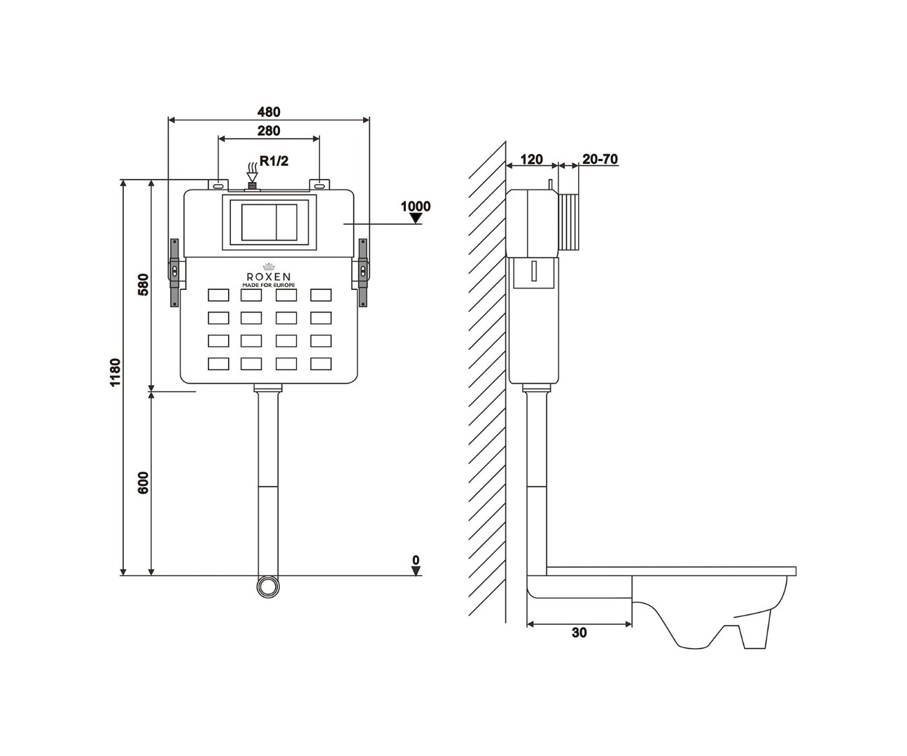 Система инсталляции Roxen Attach 710215 предназначена для установки приставного унитаза. Монтажная глубина 120 мм. Бачок защищён дополнительной шумоизоляционной пластиной S-Protect, которая предотвращает образование конденсата и плесени. Механическое управление смыва обеспечивает бесперебойную работу на весь срок службы.