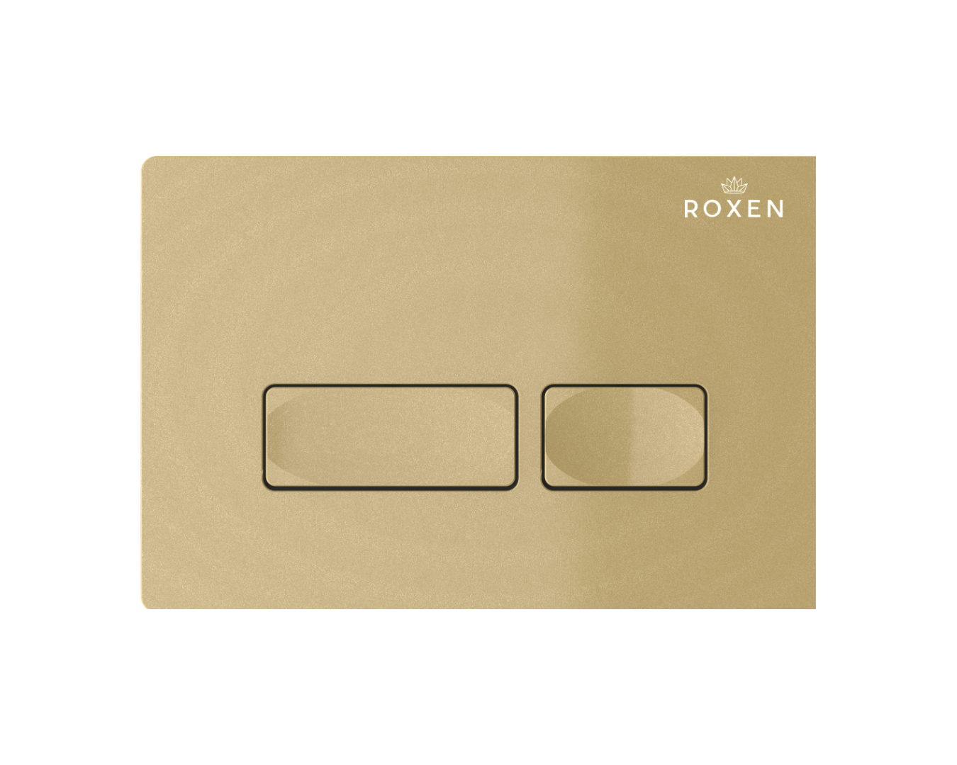 Кнопка для инсталляции Roxen Caspia 410280GB брашированное золото - ультратонкая смывная клавиша Slim Button. Оригинальный дизайн с прямоугольными кнопками придаёт вашему санузлу изящный внешний вид. Кнопка изготовлена из ударопрочного, экологически чистого ABS пластика марки HDPE, имеет нестираемое покрытие поверхности. Быстросъёмная система Easy Fix обеспечивает быстрый доступ к коммуникациям (монтаж и демонтаж клавиши осуществляется без специального инструмента). Надёжный механизм клавиши рассчитан на 200 000 циклов.