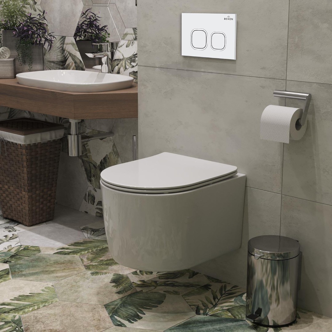 Унитаз подвесной Roxen Simple 530120-01 36,5x45,5 безободковый, с крышкой SoftClose.