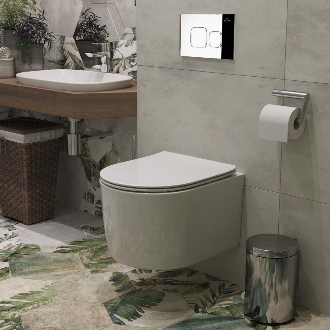Унитаз подвесной Roxen Simple 530120-01 36,5x45,5 безободковый, с крышкой SoftClose.