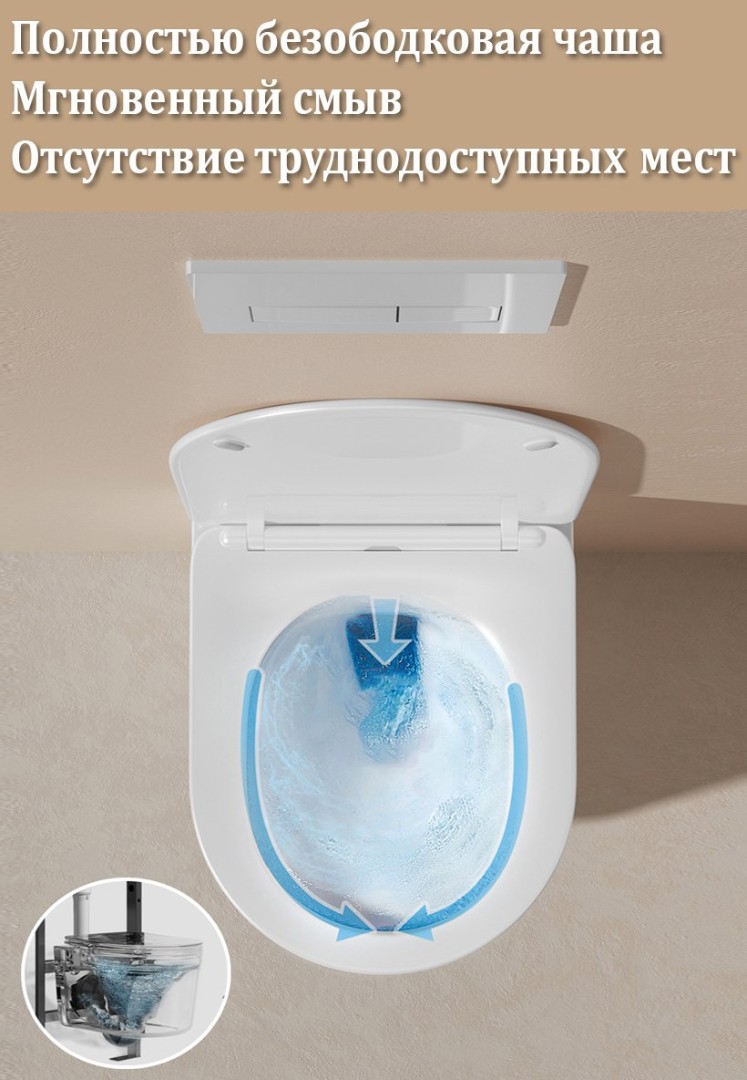 Унитаз подвесной Roxen Simple 530120-01 36,5x45,5 безободковый, с крышкой SoftClose.
