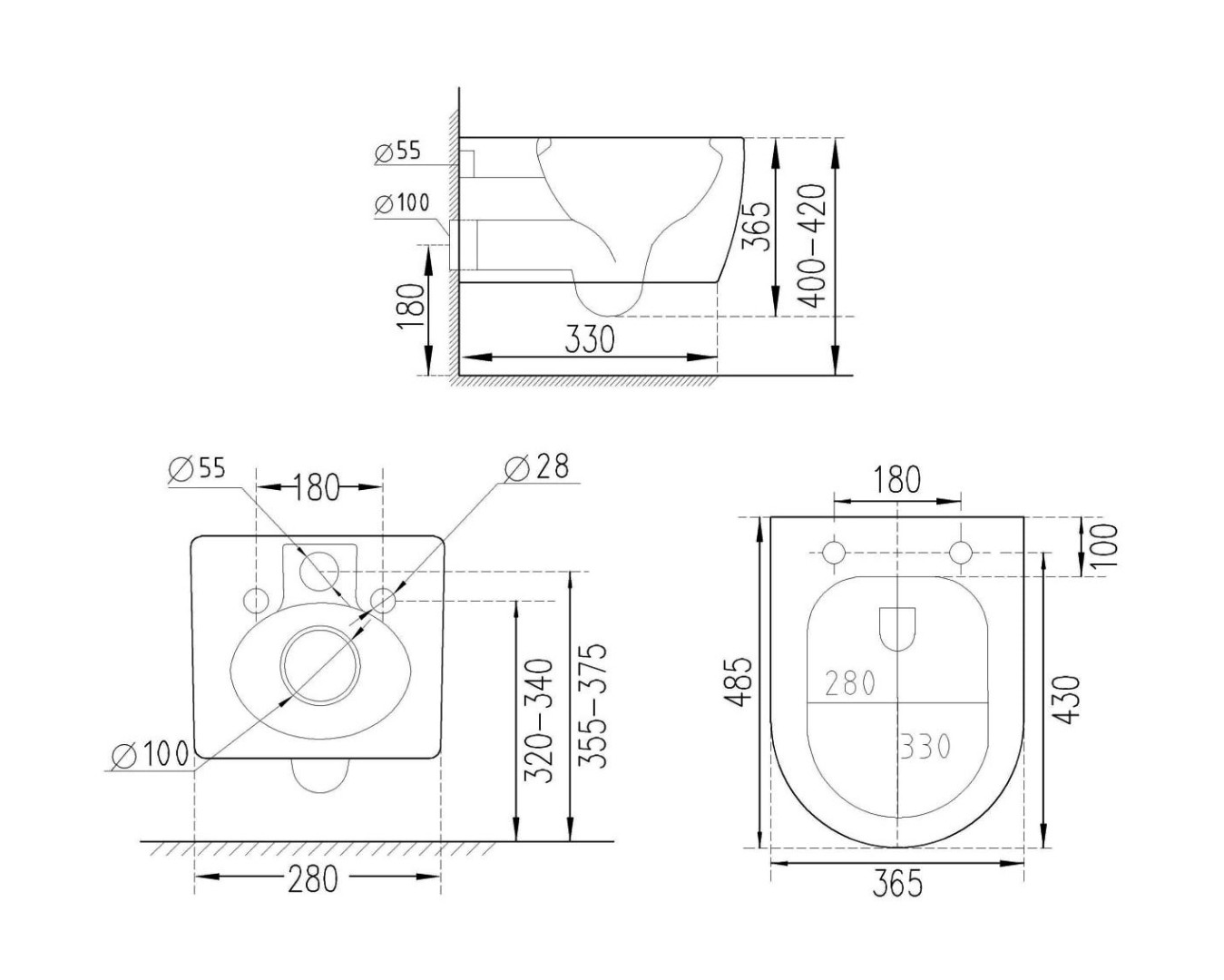Унитаз подвесной Roxen Antares Bidet 36,5x48,5 с функцией биде белый.