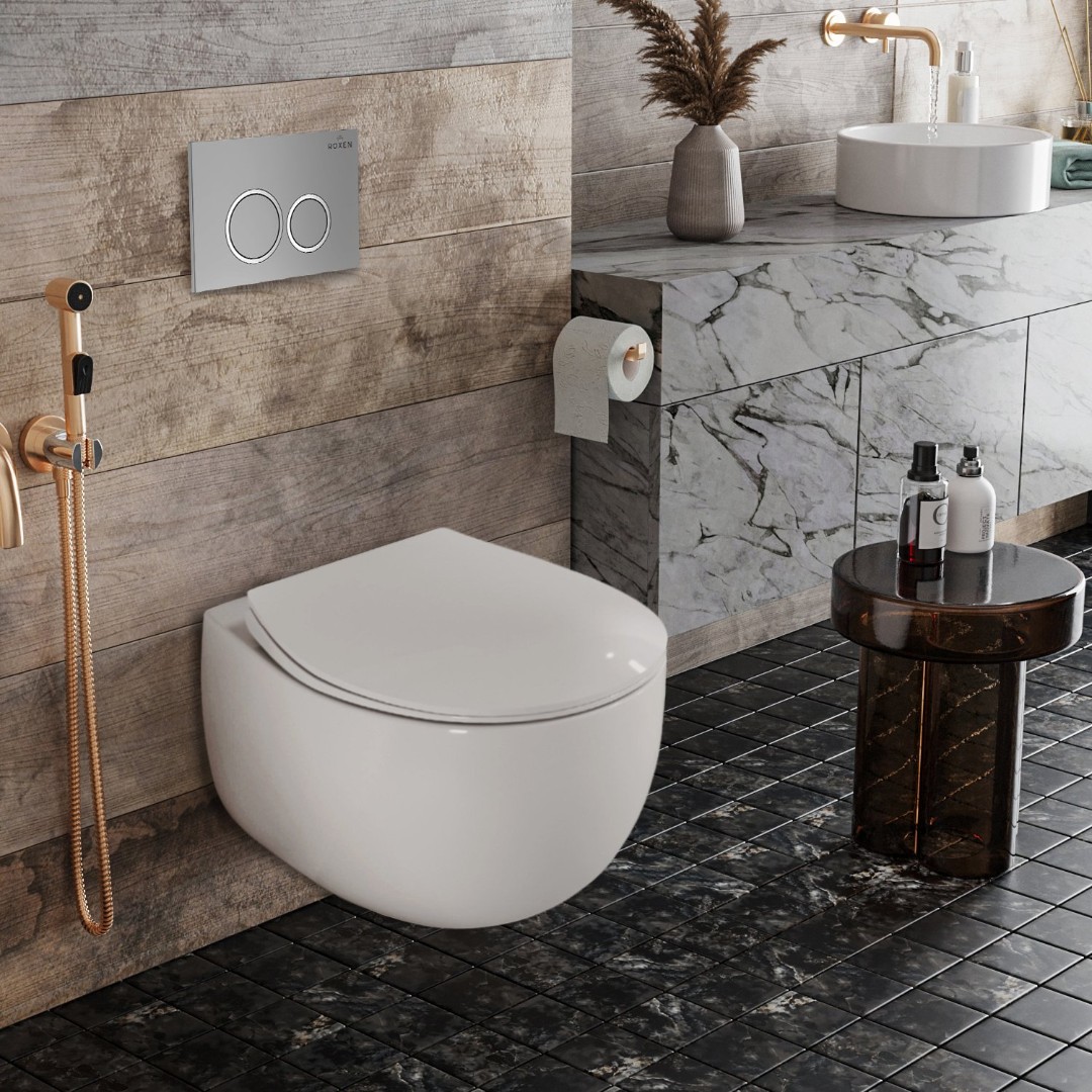 Комплект инсталляции 6 в 1 Roxen StounFix Dual Fresh 964076 с унитазом Egg 530170-01 и клавишей смыва Santi 410260M с аромадозатором.