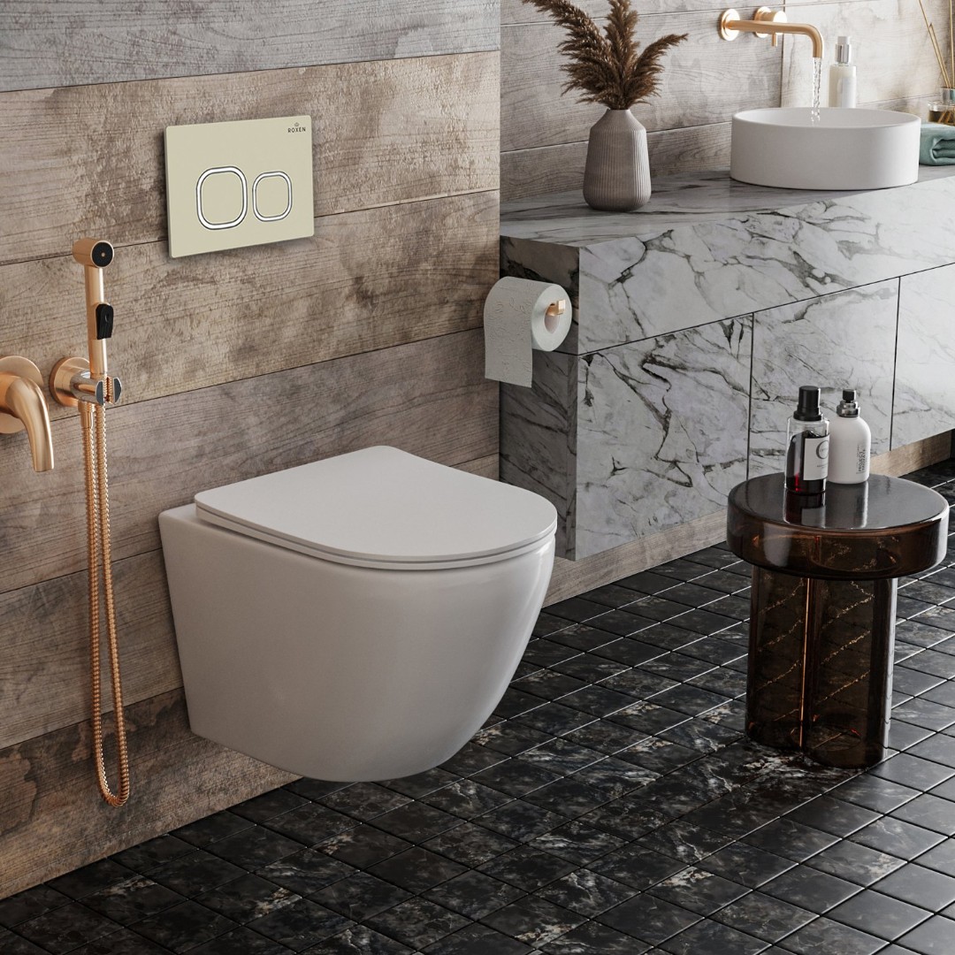 Комплект инсталляции 6 в 1 Roxen StounFix Dual Fresh 968388 с унитазом Antares Tornado 530205-01 и клавишей смыва Santi 410280BG с аромадозатором.