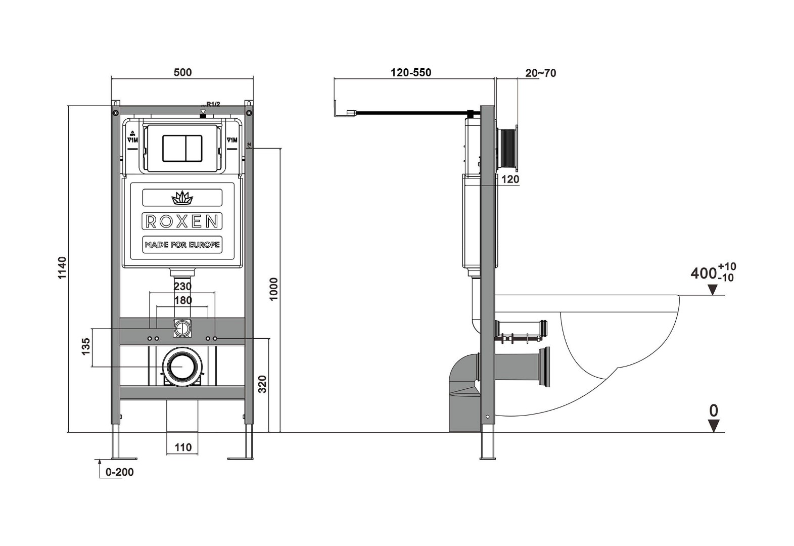 Система инсталляции для унитаза Roxen Stoun Fix Slim 710200 - надёжная усиленная модель для максимальной экономии свободного пространства. Инсталляция Roxen Stoun Fix Slim выполнена из высокопрочной стали и покрыта специальной порошковой краской, методом автоматического вакуумного напыления. Цельнолитой бачок защищён дополнительной шумоизоляционной пластиной S-Protect, которая предотвращает образование конденсата и плесени. Механическое управление смыва обеспечивает бесперебойную работу на весь срок службы.