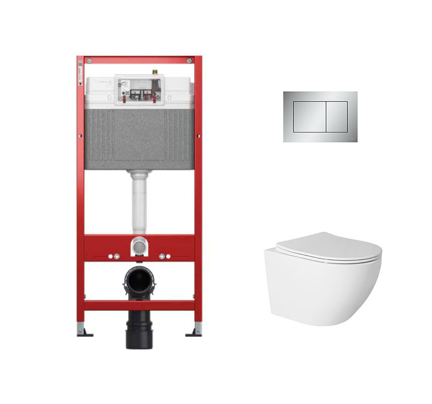 Комплект инсталляции TECEbase 9400402 с кнопкой матовый хром и унитазом Amore di Mare Delio