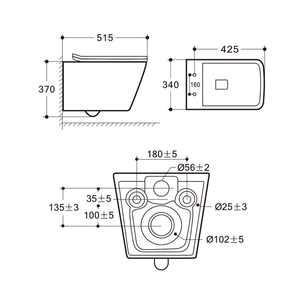 - Застенный модуль TECEbase New - размер застенного модуля: 112x50x16 см.